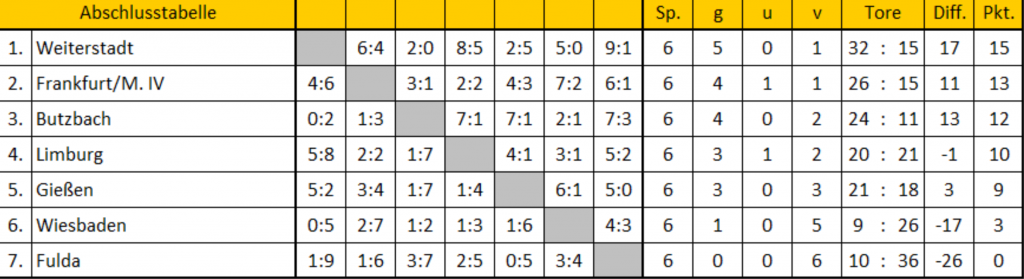 Trotz zweier Niederlagen in der Gruppenphase erreichte die JVA Butzbach das Halbfinale. Beim spannendem Elfmeterschießen gewannen sie gegen die JVA Frankfurt am Main IV. Im Finale besiegten sie dann die JVA Weiterstadt und gewannen die Hallenfußballmeisterschaft.