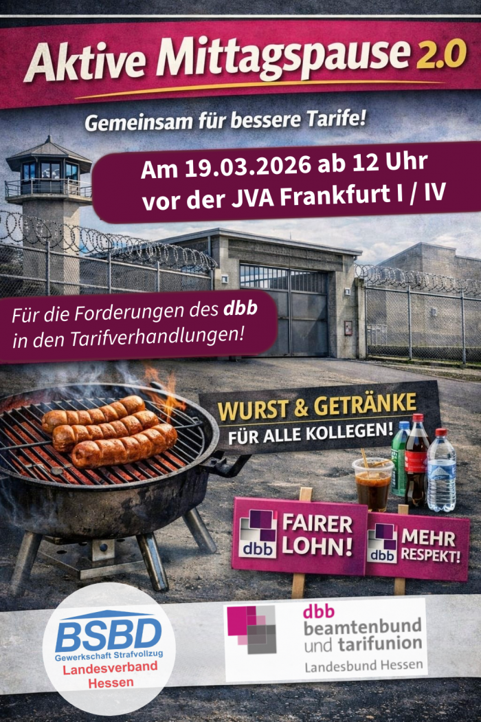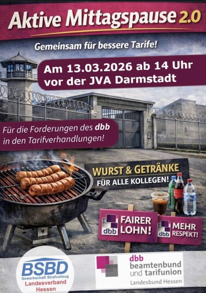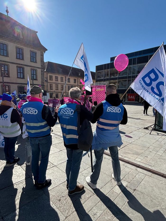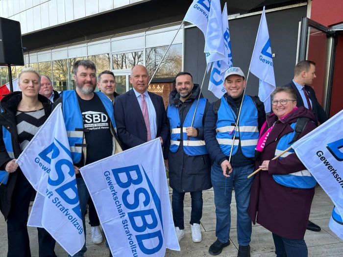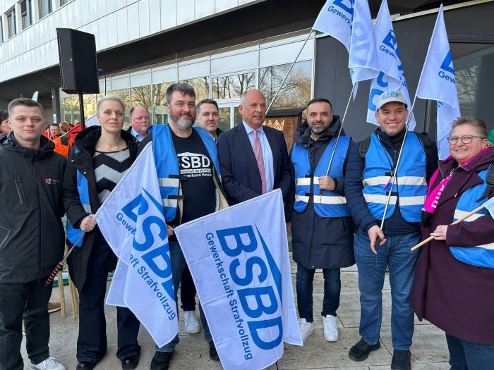 Am 27. Februar 2026 war der BSBD Hessen gemeinsam mit vielen Kolleginnen und Kollegen aus dem Landesdienst bei der Kundgebung vor dem Hessischen Innenministerium vertreten. Mit unserer Präsenz haben wir deutlich gemacht, dass auch der Justizvollzug hinter den Forderungen der Tarifrunde steht: faire Einkommen, spürbare Wertschätzung und verlässliche Rahmenbedingungen für alle Beschäftigten.