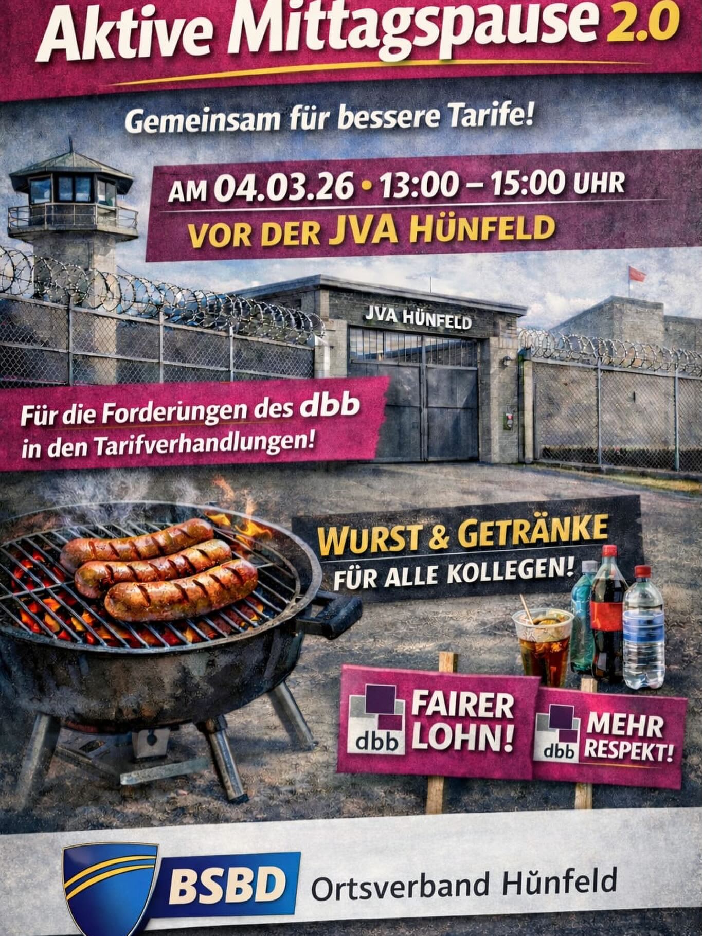 Aktive Mittagspause vor der JVA Hünfeld am 4. März 2026 von 13 bis 15 Uhr