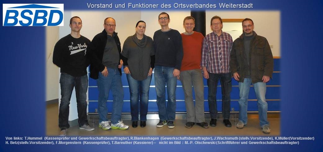 Bericht über die Mitgliederversammlung des Ortsverband Weiterstadt vom 13. März 2015 Zur jährlichen Mitgliederversammlung hatte der BSBD Ortsverband Weiterstadt für Freitag, 13. März 2015 ab 16.00 Uhr in den Sozialraum der JVA Weiterstadt eingeladen, hier der Bericht:
